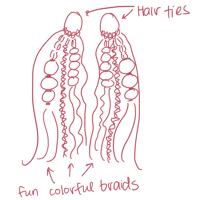 Here’s a glimpse of the process! Braiding takes a long time, and this very synthetic hair isn’t the easiest to work with.